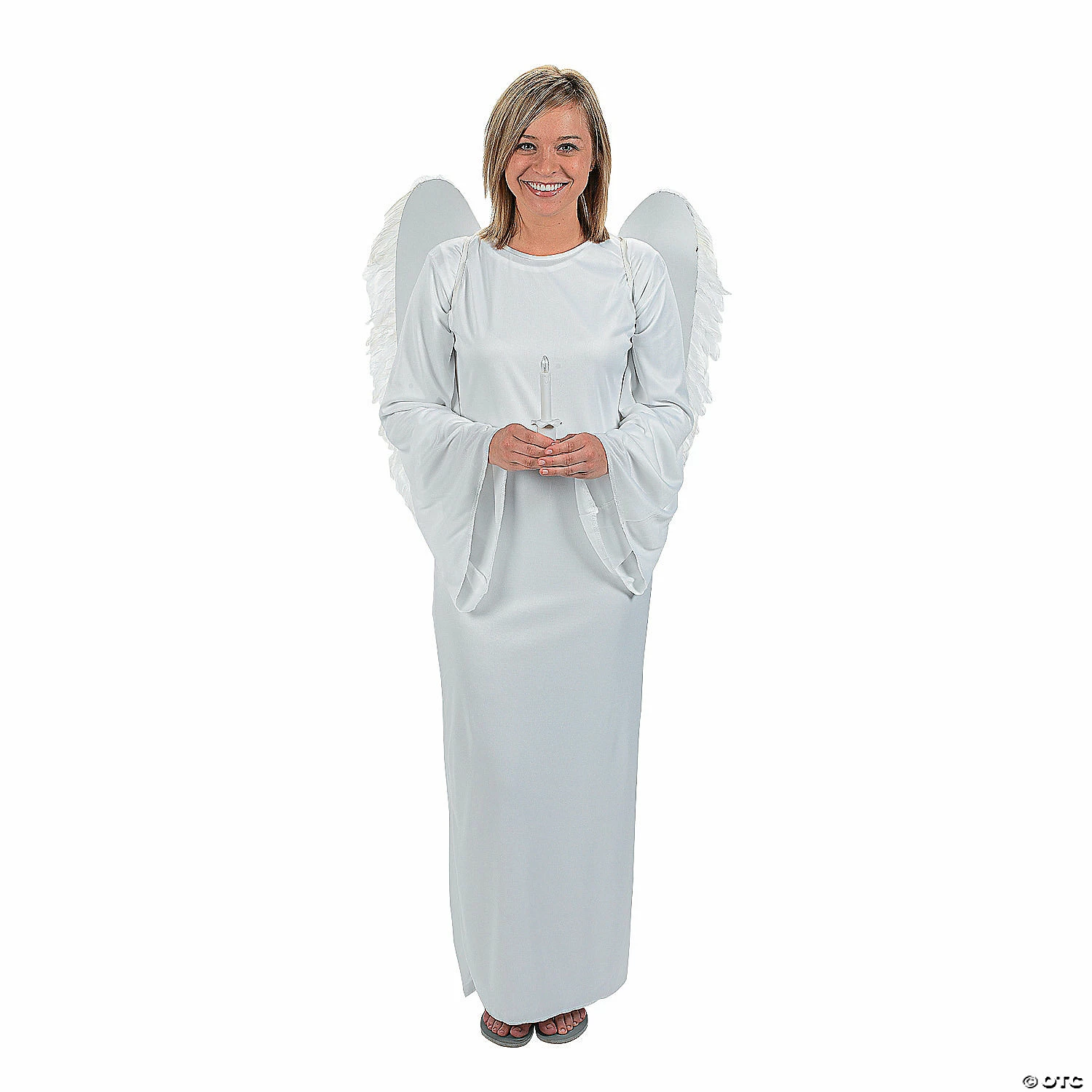 Join the choir and ascend in this glorious Angel Adult Gown With Wings & Candle. This angel costume is truly heavenly! Wear this merry cherub ensemble for a church Christmas pageant or be ready to trick-or-treat, enter a costume contest or be the hit of the Halloween party! Wear this costume to a masquerade ball or as the perfect disguise at a haunted house. This outfit is sure to win you the “best costume” award at any Christmas party or Halloween costume party! One size fits most adults. Candle requires 1 “AA” battery, not included. Imported.
