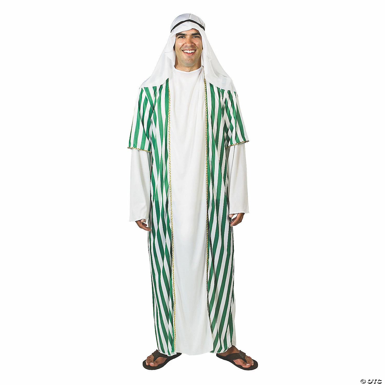 Perfect for nativity scenes or Christmas plays! The Adult’s Deluxe Shepherd Costume includes polyester gown and headpiece. The gown is white with green stripes and gold trim, and the headpiece is white with a black band. Add your own sandals to complete the look. (2 pcs. per set) One size fits most. Imported.